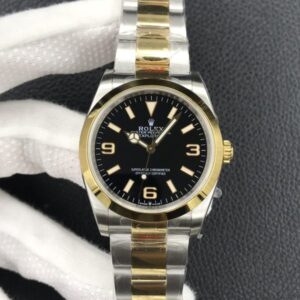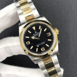 Clean Factory Rolex Explorer 36mm Black Dial Gold Bezel 904L Stainless Steel 3230 Swiss Movement