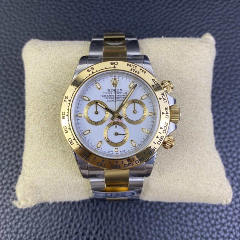 Be the first to review “Clean Factory Rolex Daytona Chronograph White&Gold Dial Yellow Gold Bezel Stainless Steel Case Two-Tone Bracelet 7750/4130 Movement”